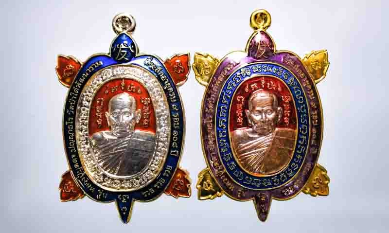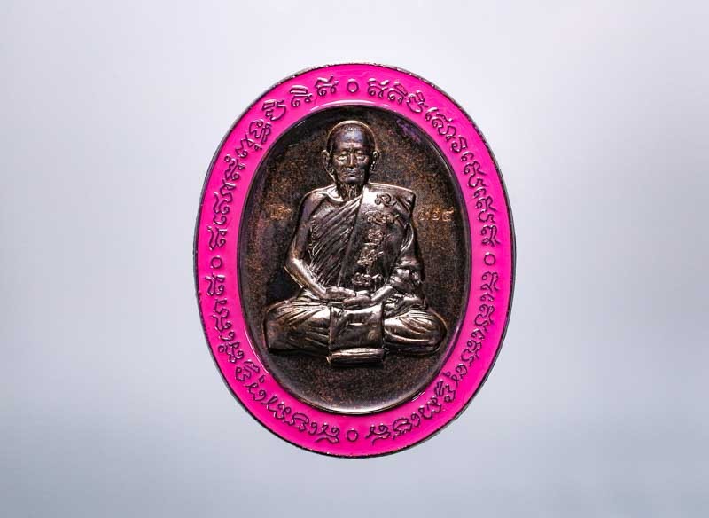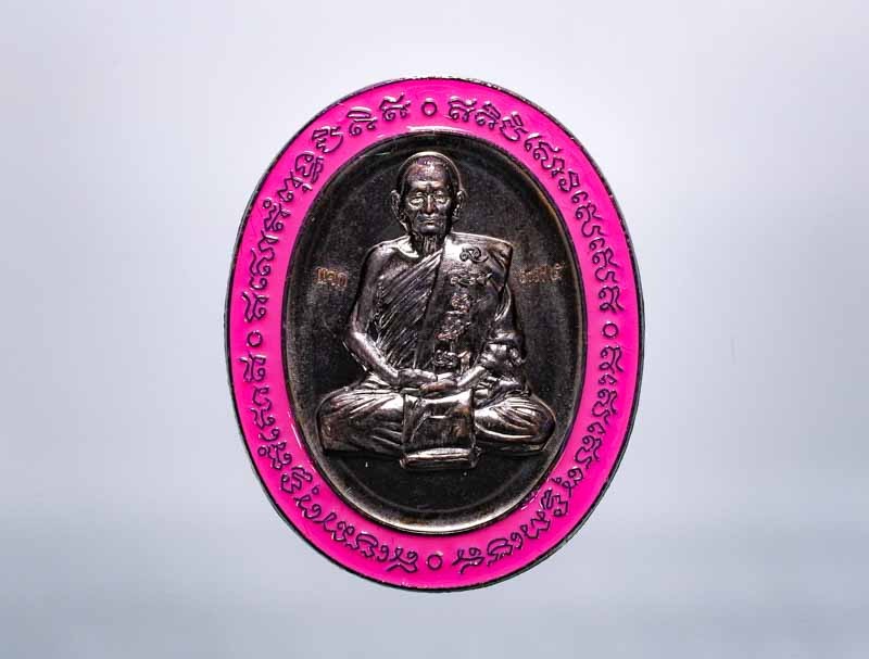 วัดใจ 100 เหรียญเสมารวยทันใจ หลวงพ่อรวย วัดมาบตาพุด จ.ระยอง ปี 2565 ชนวนผิวรุ้ง ลงยาม่วง หมายเลข 142 กล่องเดิม |
