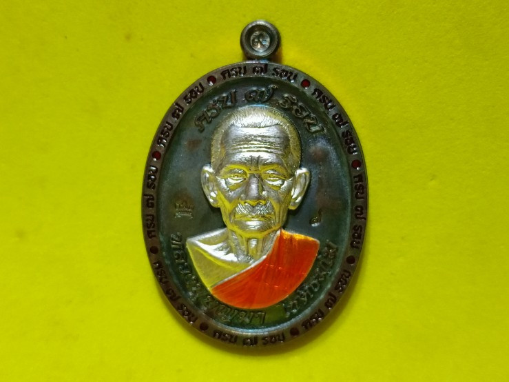 เหรียญพัดยศ หลวงปู่คร่ำ วัดวังหว้า ระยอง เนื้อเงินลงยา |