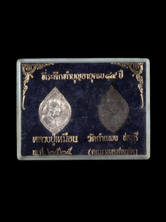 วัดใจเคาะเดียวแดง เหรียญหลวงปู่เหมือน วัดกำแพง นั่งโต๊ะ จังหวัดชลบุรี |