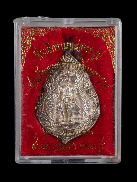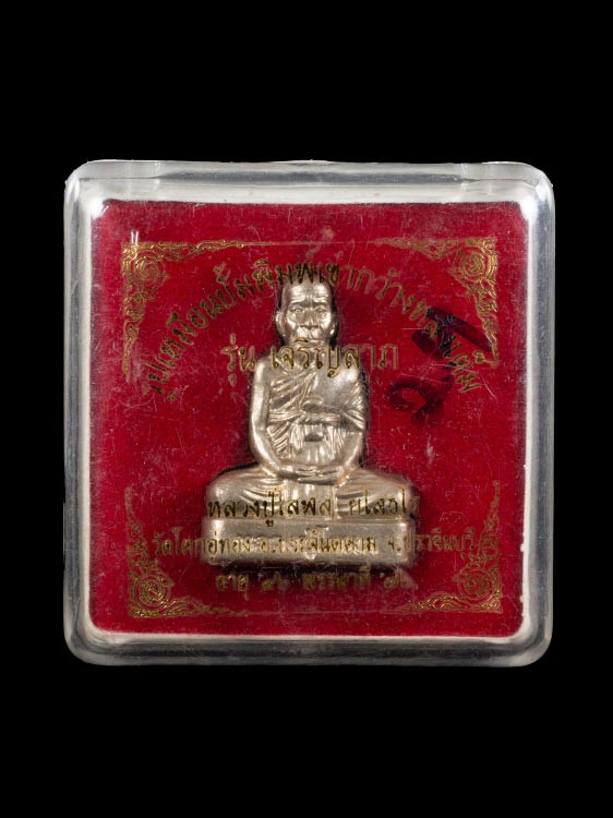 เหรียญนั่งพานสำเภาทอง หลวงปู่ฮก วัดราษฏร์เรืองสุข จ.ชลบุรี ปี พ.ศ.2558 เนื้ออาบเงิน ลงยาสี ตอกโค้ต หมายเลข 5141 ซีลเดิม พร้อมกล่อง ผิวสวยๆ |