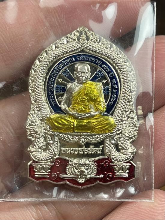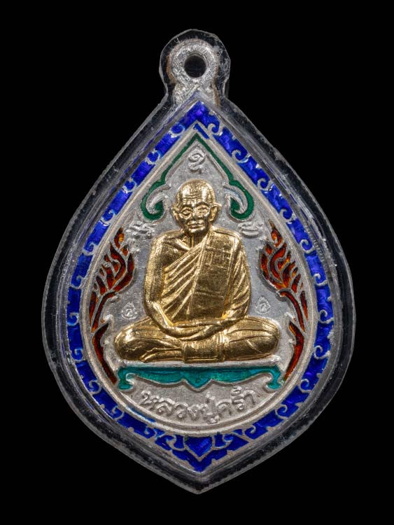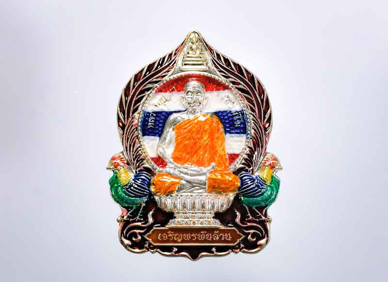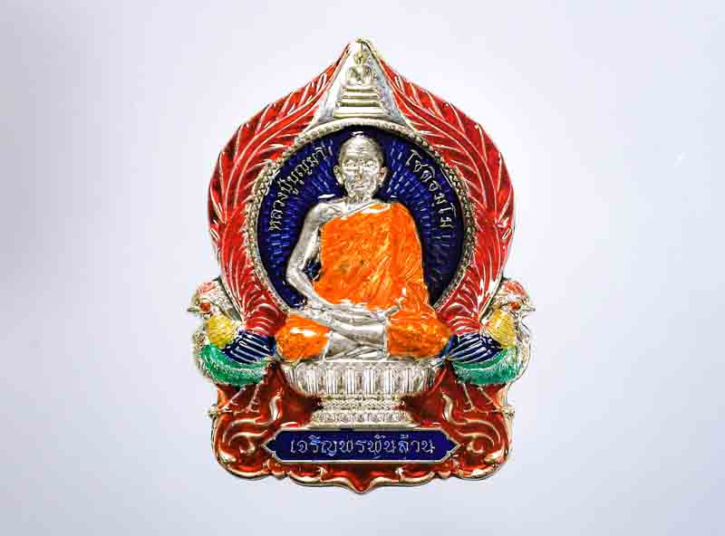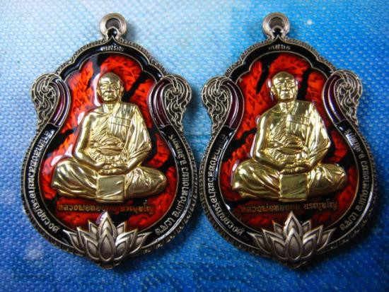 เคาะเดียวแดง หลวงปู่บุดดา รุ่น มังกรคู่เลื่อนสมณศักดิ์ เนื้อ โลหะหน้ากากเงินลงยาจีวร 2องค์ |