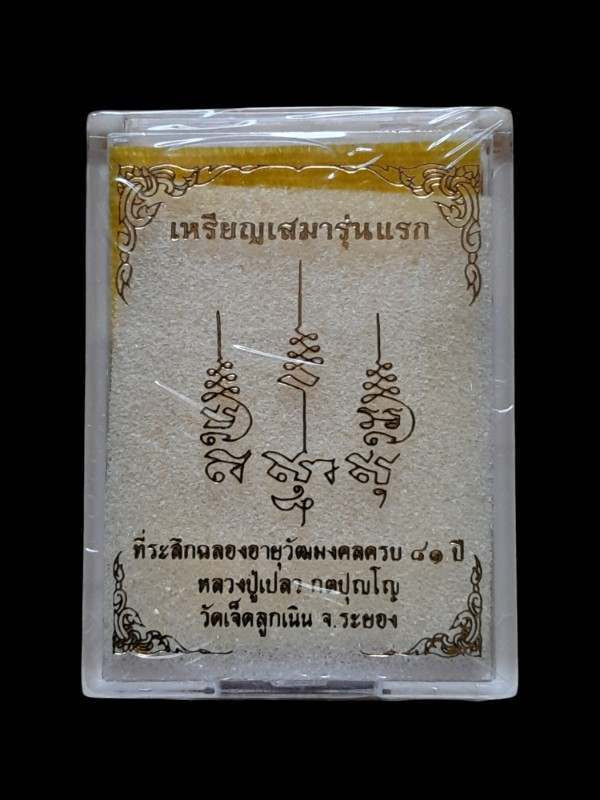 เหรียญเสมารุ่นแรก หลวงปู่เปลว กตปุญฺโญ เนื้อทองแดงหน้ากากเงิน ยังไม่เปิดซีลลุ้นเลขสวยค่ะ |