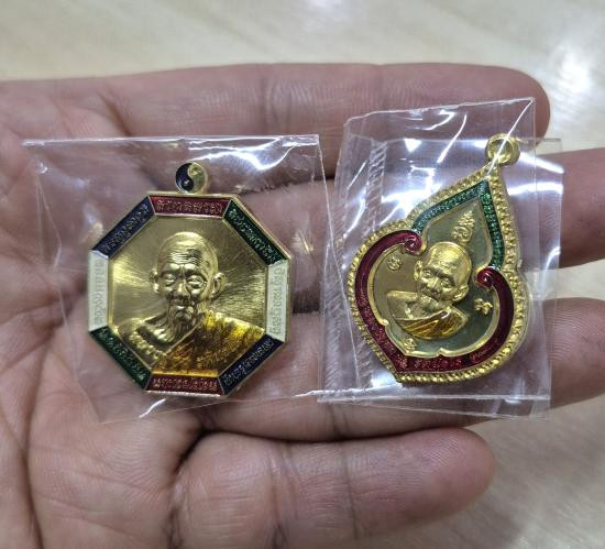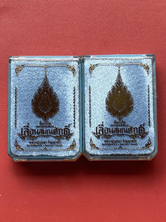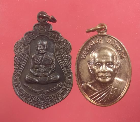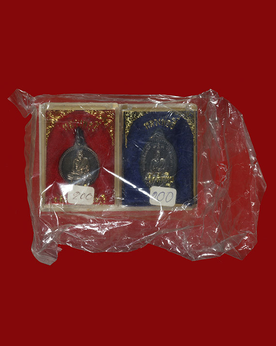 เหรียญห่วงเชื่อม หลวงพ่อทองสุข วัดหนองฆ้อ เนื้อสัตตะโบว์แดง หมายเลข 345 กับ 2786 จำนวน 2 เหรียญ พร้อมกล่องเดิม รับประกันตามกฎ |