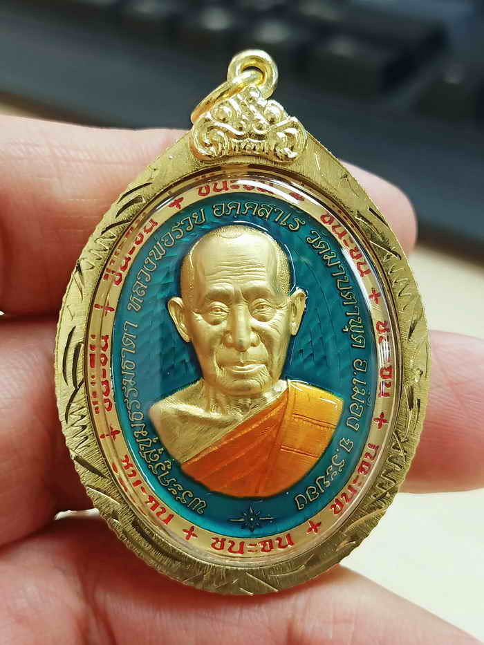 เคาะเดียวแดง หลวงปู่บุดดา รุ่น ล็อกเก็ตเลื่อนสมณศักดิ์ สีแดงกับสีเขียว หลังฝังตะกรุดเงินคู่ แผ่นรันเลขเงิน |