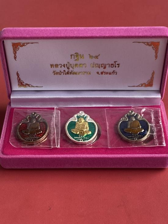 วัดใจ 100 เหรียเจริญพรอรหันต์ 8 ทิศ หลวงปู่บุญมา สำนักสงฆ์เขาแก้วทอง จ.ปราจีนบุรี 2564 ชุบเงิน ขอบดำ จีวร หมายเลข 7 กล่องเดิม |