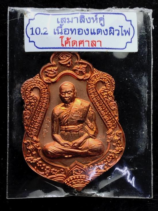 เสมาสิงห์คู่ หลวงพ่อทองสุข วัดหนองฆ้อ ทองแดงผิวไฟ เลข8443พร้อมกล่องสร้างน้อย โค๊ดศาลาพิเศษ |
