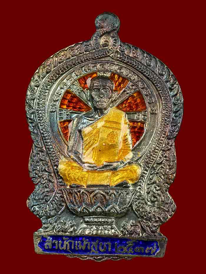 วัดใจ เหรียญนั่งพานรุ่นแรก หลวงพ่อสวัสดิ์ วัดเม้าสุขา เนื้อเงินลงยา ปี37 สภาพสวยเดิมตากล่อง เลข18 |