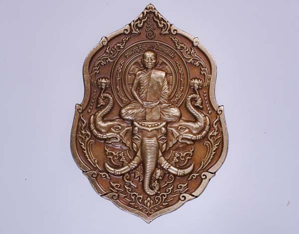 รูปเหมือนลอยองค์ หลวงปู่ฮก วัดมาบลำบิด รุ่น 1 เนื้อทองฝาบาตร ตอกโค๊ต+หมายเลข 1487 ปี พ.ศ.2555 พร้อมกล่อง พระสวยๆ สร้างรุ่นแรกๆ หายาก |
