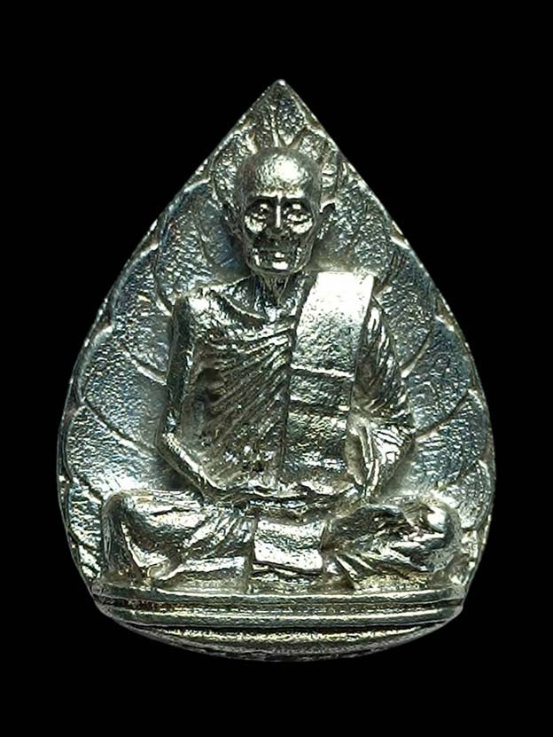 รูปหล่อใบโพธิ์ หลวงปู่ม่น วัดเนินตามาก เนื้อเงิน (น้ำหนักเหรียญ 7.6 กรัม) ปี พ.ศ.2533 สภาพสวย พร้อมกล่องเดิม |