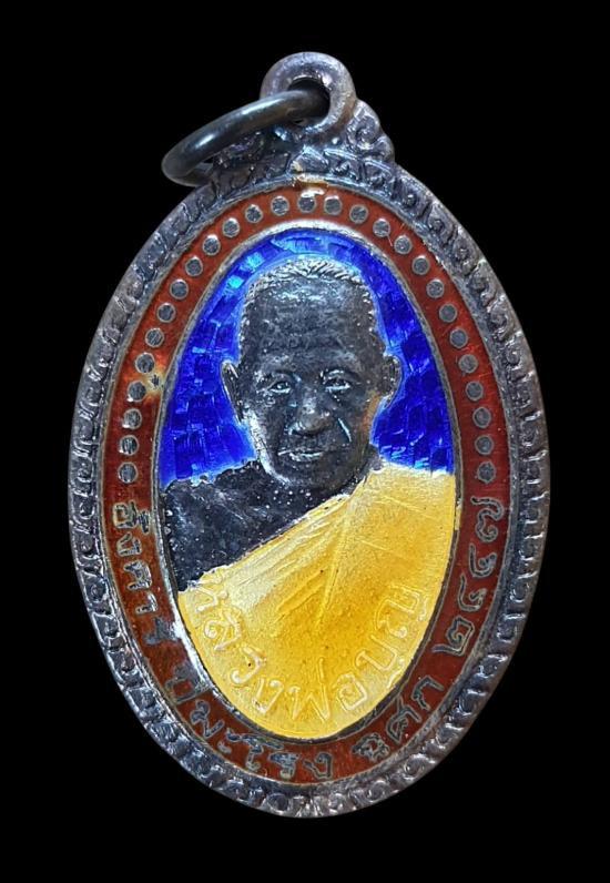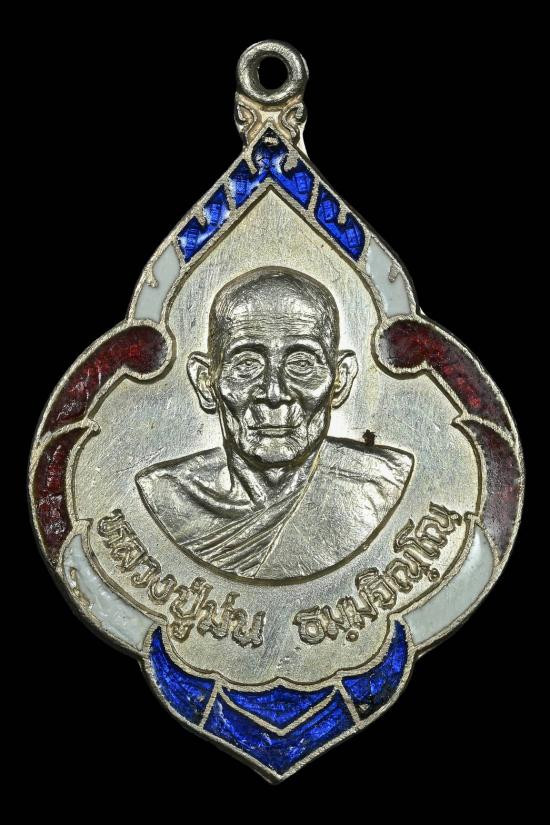 เหรียญพุ่มข้าวบิณฑ์(หน้าวัว)เงินลงยาสีธงชาติ หลวงปู่ม่น วัดเนินตามาก ปี2534 จ.ชลบุรี |