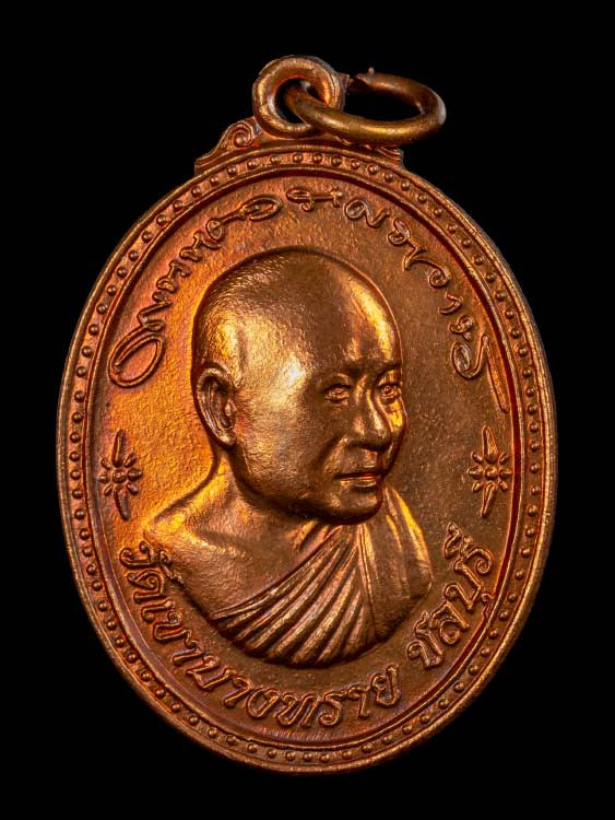 เหรียญพ.ฆ.อ สมเด็จพระพุทธโฆษาจารย์(เจริญ) วัดเขาบางทราย พิมพ์หลังพระ เนื้อทองแดง ห่วงเดิม ปี2495 จ.ชลบุรี |