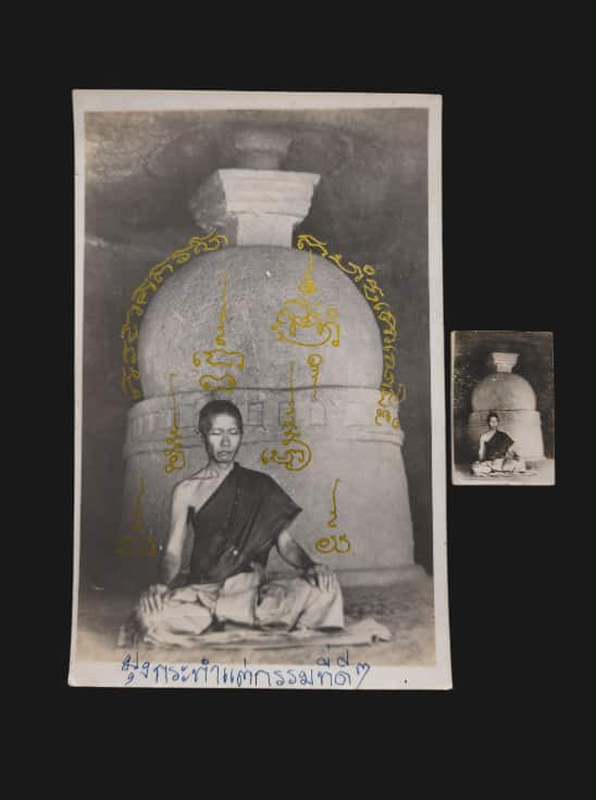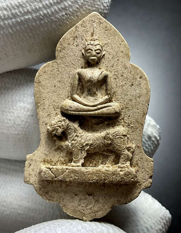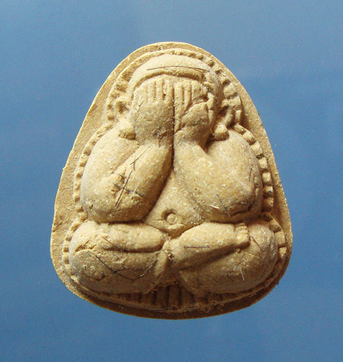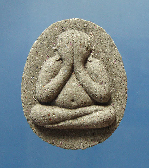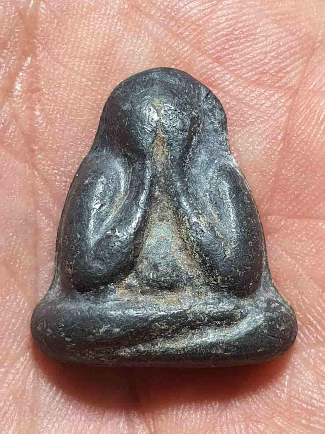 วัดใจ พระประทานพรหน้าอินเดีย หลวงปู่เฮี้ยง วัดป่า จ.ชลบุรี เนื้อผงคลุกรัก หลังยันต์ มุ ปี 2507 |