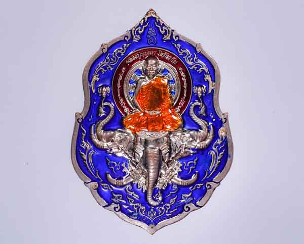 เหรียญพยัคฆ์สยาม หลวงพ่อจ้อย วัดหนองน้ำเขียว ชลบุรี ปี38 บล๊อคตีนใหญ่ เนื้อเงินลงยา |