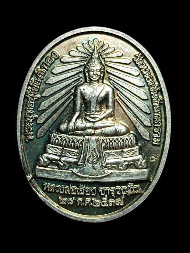 เหรียญพระพุทธสุโขโพธิ์ทอง ที่ระลึก ฉลองอายุ 5 รอบ หลวงพ่อเฮียง วัดหนองชันจันทนาราม เนื้อเงิน (น้ำหนักเหรียญ 11.6 กรัม) ตอกโค๊ตเลข ๙ ปี พ.ศ.2539 จ.ชลบุรี |