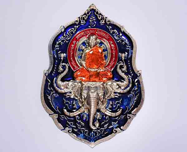 เหรียญพยัคฆ์สยาม หลวงพ่อจ้อย วัดหนองน้ำเขียว ชลบุรี ปี38 บล๊อคตีนใหญ่ เนื้อเงินลงยา |