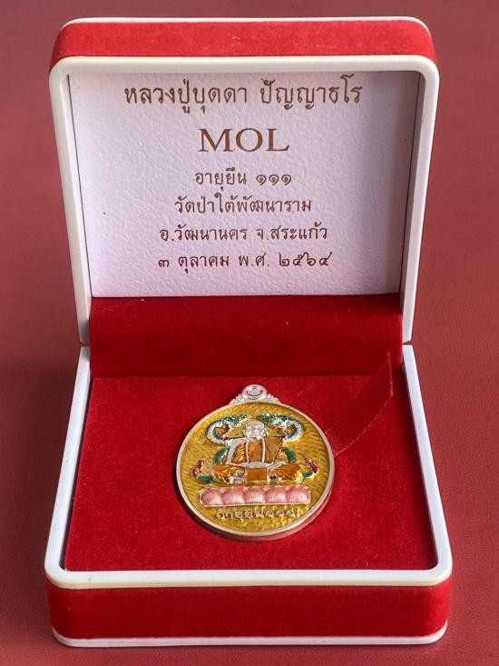 เคาะเดียวแดง หลวงปู่บุดดา รุ่น อายุยืนยง111 เนื้อเงินลงยา น้ำหนัก19กรัม |