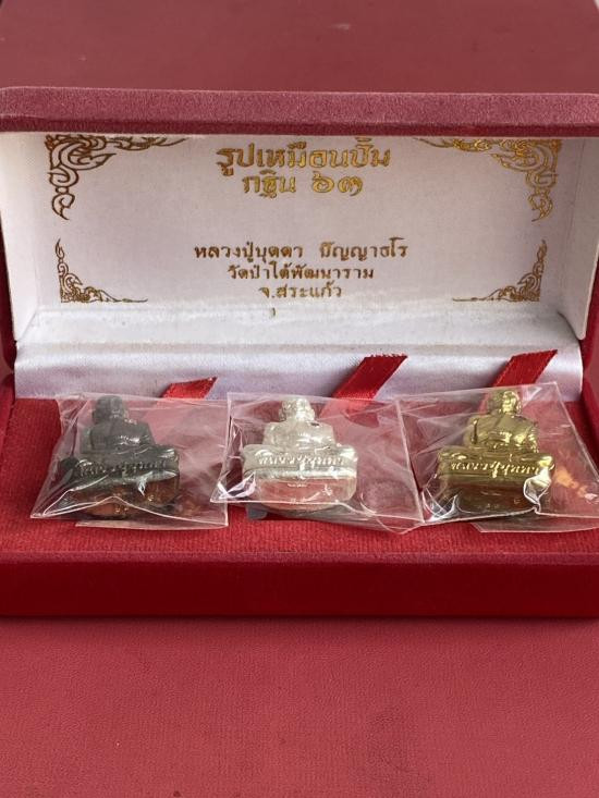 เคาะเดียวแดง หลวงปู่บุดดา รูปหล่อ รุ่นพญานกถึกทือเรียกทรัพย์เนื้อ เงินฝังพลอย น้ำหนัก 19.3กรัม |