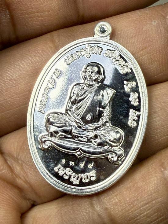 เหรียญเจริญพรล่าง เนื้อเงิน หลวงปู่ฮก เลข 1344 ครับ |