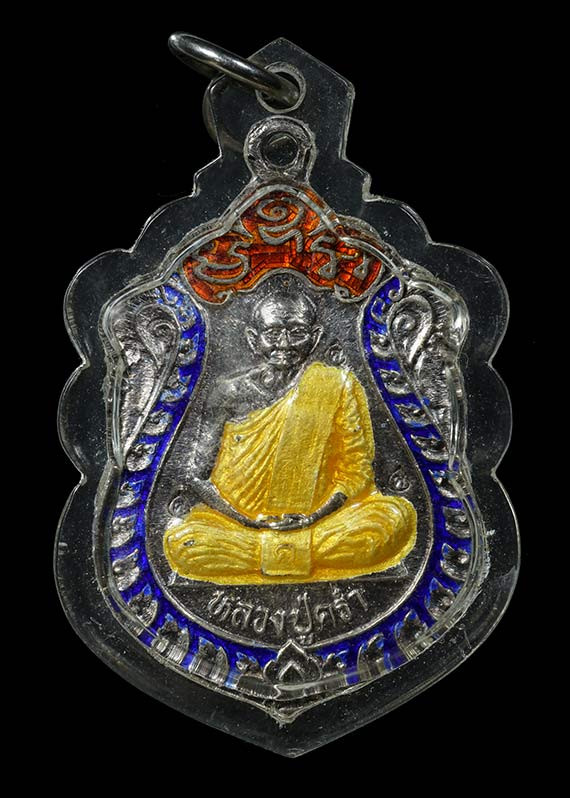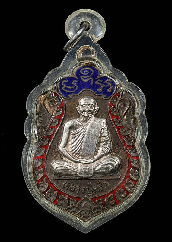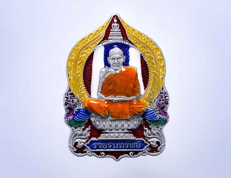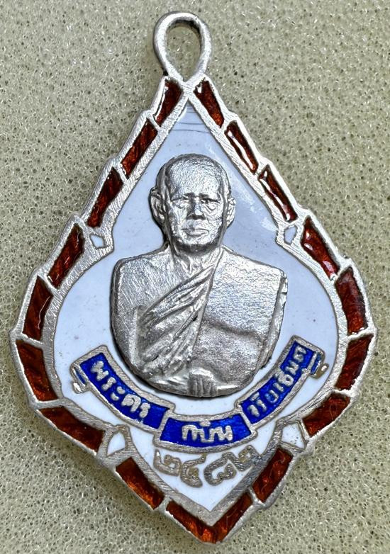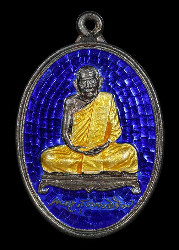 เหรียญนั่งพาน เนื้อเงินลงยา หลังเจดีย์ ลพ.สวัสดิ์ วัดเม้าสุขา จ.ชลบุรี ปี2537 |