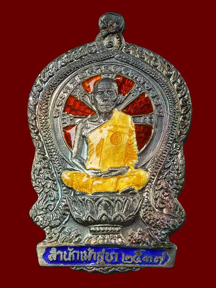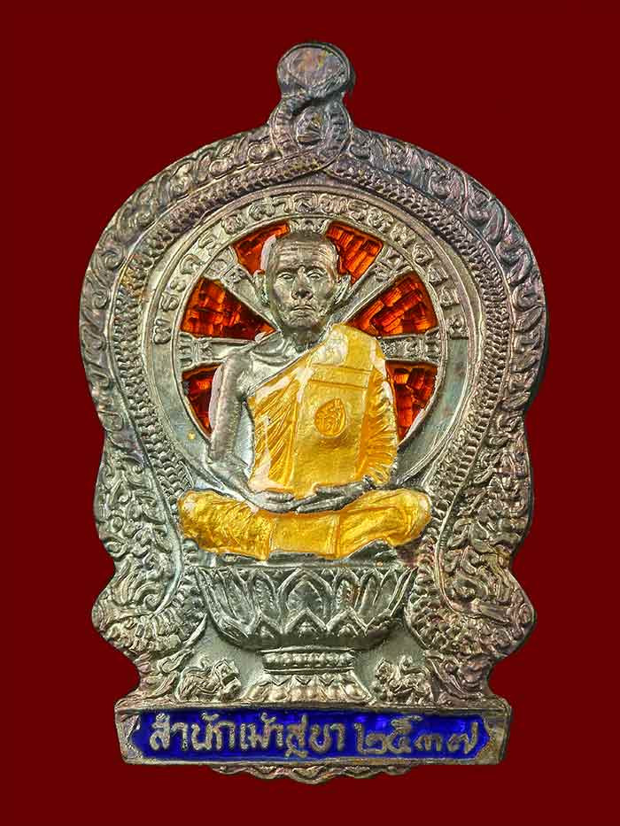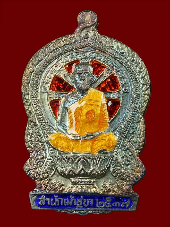 วัดใจ เหรียญนั่งพานรุ่นแรก หลวงพ่อสวัสดิ์ วัดเม้าสุขา เนื้อเงินลงยา ปี37 สภาพสวยเดิมตากล่อง เลข90 |