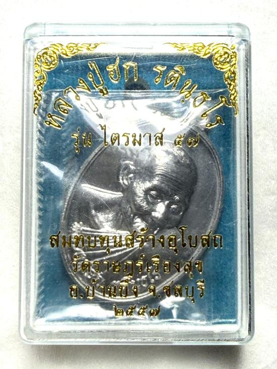 เหรียญไตรมาส หลวงปู่ฮก วัดราษฎร์เรืองสุขปี 2557 พร้อมกล่องครับ |