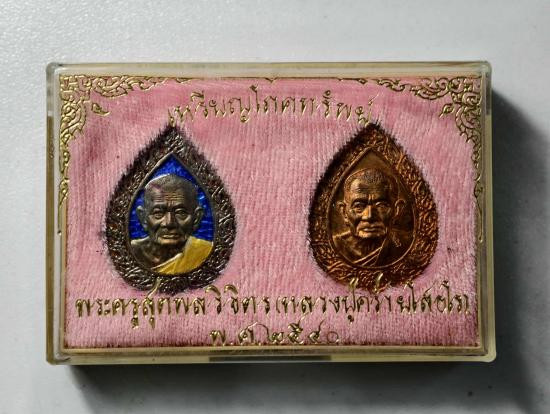 วัดใจ เหรียญนั่งพานรุ่นแรก หลวงพ่อสวัสดิ์ วัดเม้าสุขา เนื้อเงินลงยา ปี37 สภาพสวยเดิมตากล่อง เลข25 |