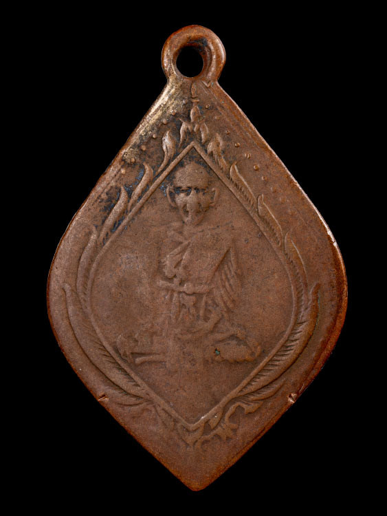 วัดใจ หลวงพ่อแดง วัดใหญ่อินทาราม ชลบุรี รุ่น3 เหรียญรูปใบสาเกเล็กเนื้อทองเหลือง |
