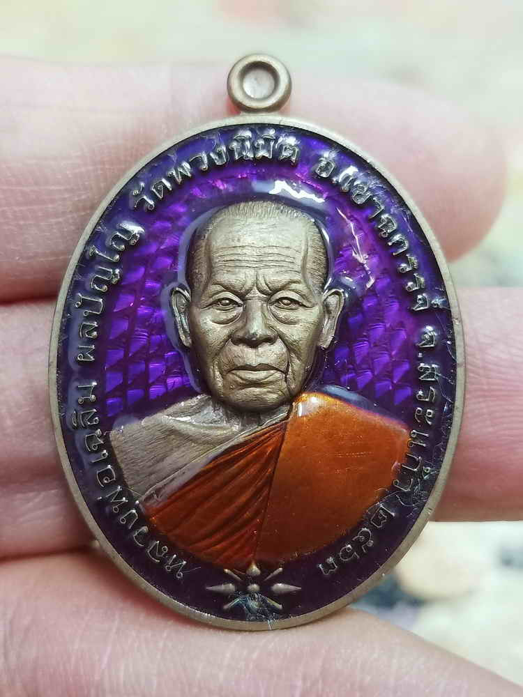 วัดใจ 100 เหรียญชนะจน หลวงพ่อเฉลิม วัดพวงนิมิตร จ.สระแก้ว 2563 ชนวน ลงยาม่วง จีวร หลังหน้ากากไก่ หมายเลข 505 กล่องเดิม |