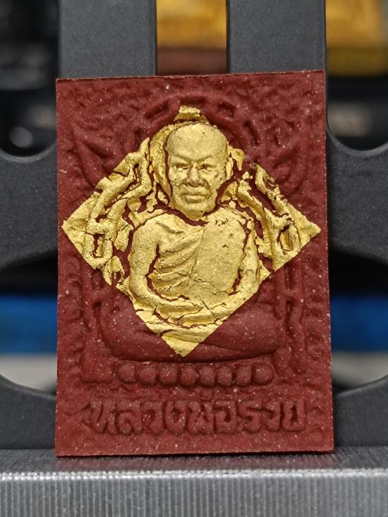 พระผงพรายกุมาร เศียรโต หลวงพ่อรวย อคฺคสาโร วัดมาบตาพูด จ.ระยอง เนื้อผงชานหมากหน้าปิดทอง หลังฝังตะกรุดฝาบาตร หมายเลข 19 |