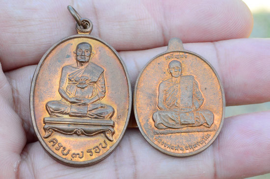 100 ส่งด่วน*เหรียญหลวงปู่ม่น วัดเนินตามาก จ.ชลบุรี เนื้อทองแดง ครบ 7 รอบ ปี 2537 สวยครับ2 เหรียญ |