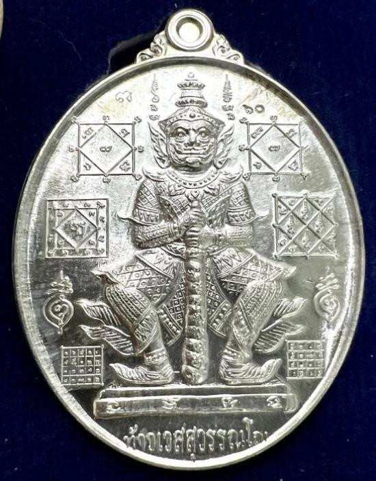 เหรียญท้าวเวสสุวรรณ รุ่นมหาเศรษฐี เนื้อเงิน วัดจรูญราษฎร์ กล่องเดิม |