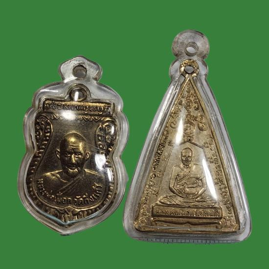 เคาะเดียว 2 องค์ครับ รูปเหมือนใบโพธิ์ เนื้อนวะโลหะ ออกโดยมูลนิธัวัดน้อย หลวงปู่ม่น ธัมมจิณโณ วัดเนินตามาก |