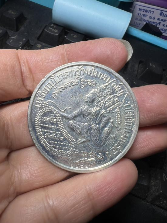 เหรียญศาลเทพเจ้าไท้เสียงเล่ากุน อ.แกลง ระยอง สร้างในงานฉลองศาลเทพเจ้าไท้ฯ เนื้อเงิน |
