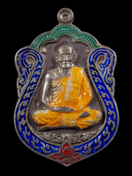 เหรียญเสมา 8 รอบ หลวงปู่คร่ำ วัดวังหว้า จ.ระยอง เนื้อเงินลงยา พร้อมกล่อง |