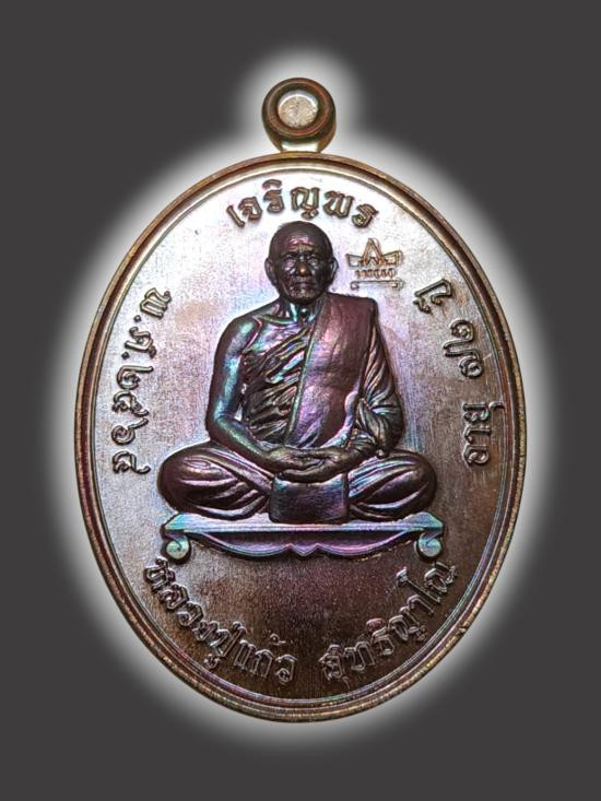 A1418.เหรียญเจริญพร หลวงปู่แก้ว วัดเขาไม้เเก้ว ทองเเดงผิวไฟรมรุ้งสวยมาก เลข 2968 |