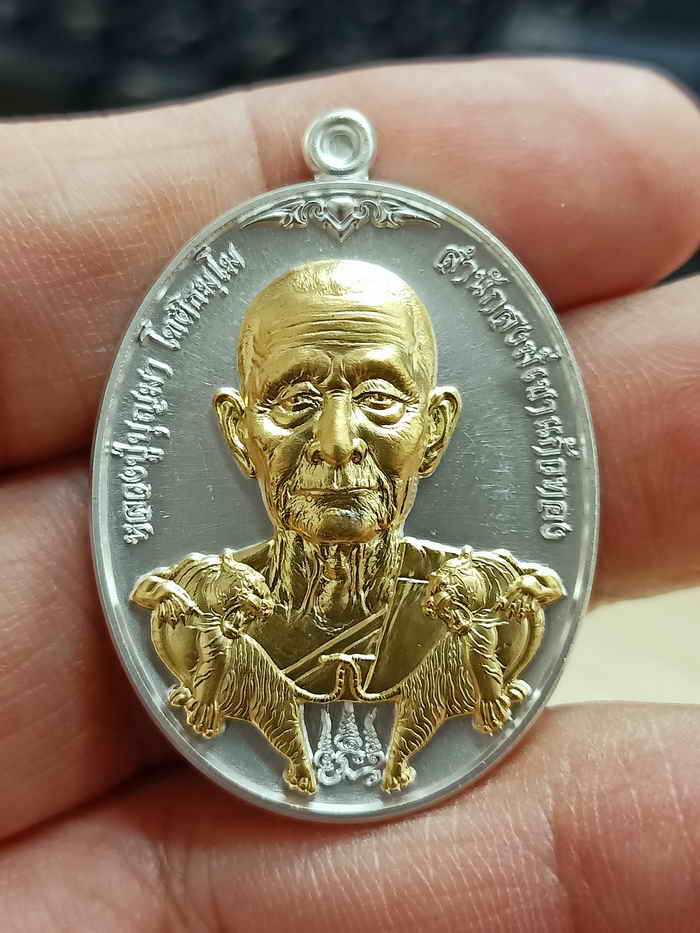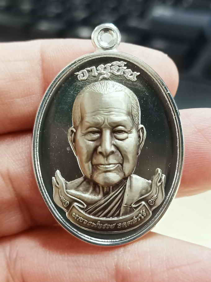 วัดใจ 100 เหรียญอายุยืน หลวงพ่อรวย อคคฺสาโร วัดมาบตาพุด ระยอง ปี 2566 ชชุบเงิน หน้ากากอัลปาก้าซาติน หมายเลข 24 กล่องเดิม |