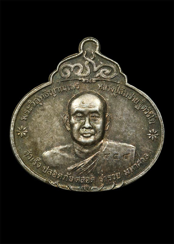 เหรียญศาลเทพเจ้าไท้เสียงเล่ากุน อ.แกลง ระยอง สร้างในงานฉลองศาลเทพเจ้าไท้ฯ เนื้อเงิน |