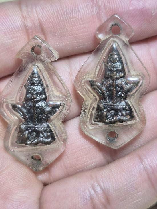 ปรกท้าวเวสสุวรรณ พิมพ์หน้ายักษ์ เนื้อนวะโลหะ 2 องค์ หลวงปู่กาหลง เขี้ยวแก้ว |