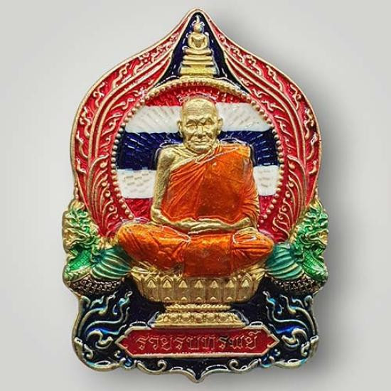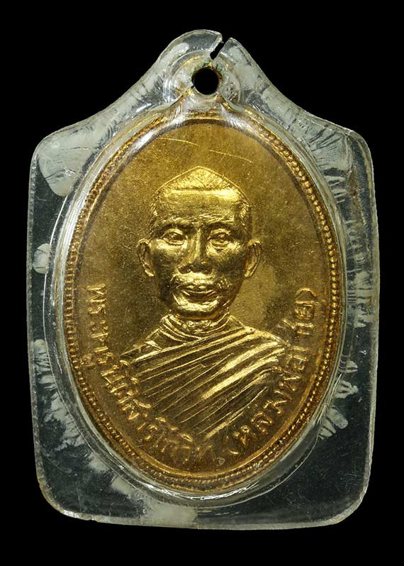 หลวงปู่ฮก วัดวัดราษฏร์เรืองสุข(มาบลำบิด) เหรียญปาดตาลทองฝาบาตรลงยา โค๊ต ก.กรรมการ |