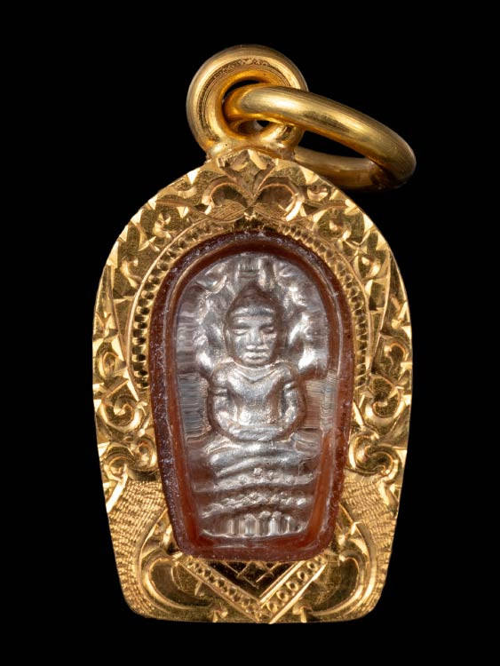 หลวงพ่อยงยุทธ วัดเขาไม้แดง พระพิมพ์แหวกม่าน ปี 13 เลี่ยมเงินกันน้ำ |
