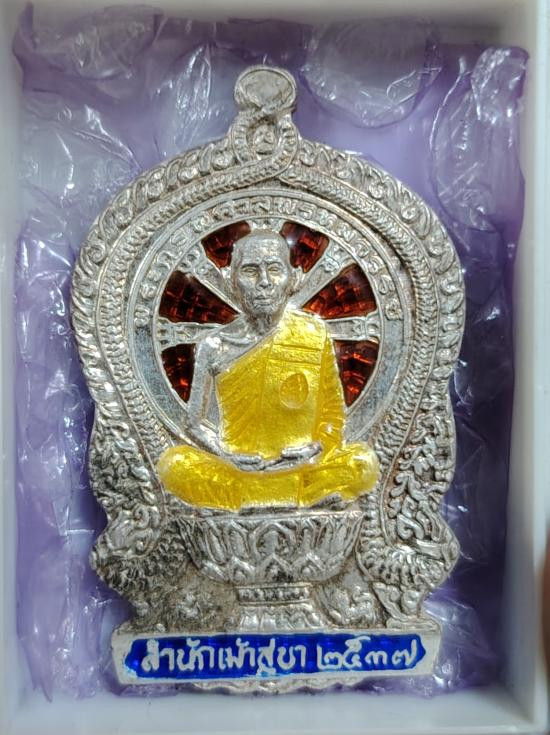 เหรียญนั่งพานหลวงพ่อสวัสดิ์้้เนื้ิอเงินลงยาเงินสูง99%มีกล่องกำมะหยี่กระดาษหุ้มครบ |