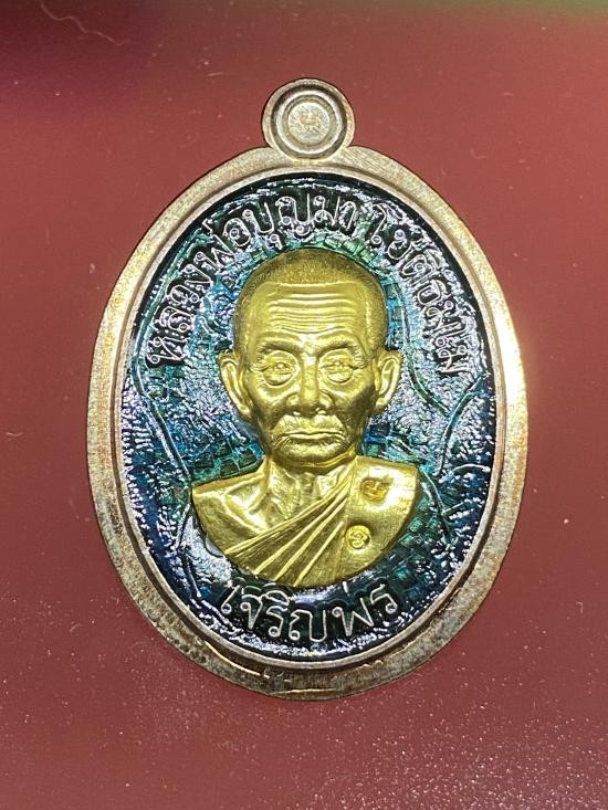 เหรียญเจริญพรเลี่อนสมณศักดิ์ เนื้อทองแดงผิวไฟส้ม ลงยาพื้นขาว หน้าเจริญพร สร้างน้อย 760 เหรียญ หมายเลข 266 หลวงพ่อทองสุข วัดหนองฆ้อ ระยอง พร้อมกล่องเดิมจากวัด ( ขนาดความสูง 4.3 ซม. กว้าง 3 ซม. ) |