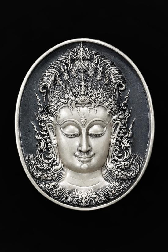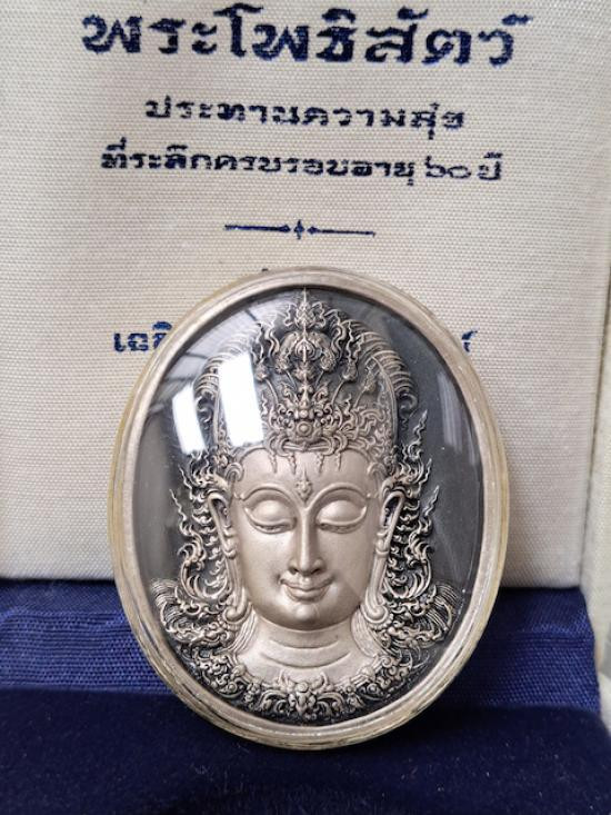 เหรียญหล่อพระโพธิสัตว์ ประทานความสุข ที่ระลึกครบรอบ ๖๐ ปี เนื้อเงิน หมายเลข ๑๒๙๗ อุปกรณ์ครบชุด |