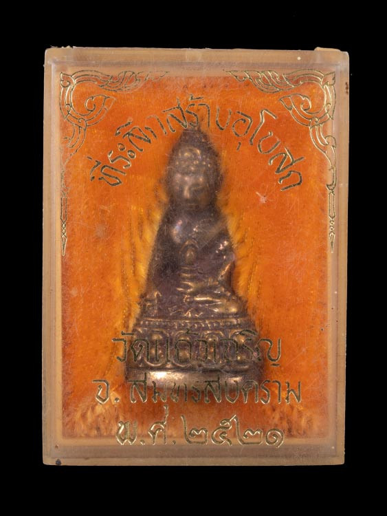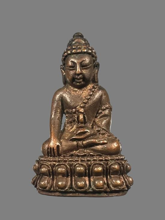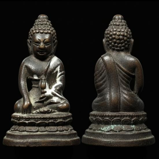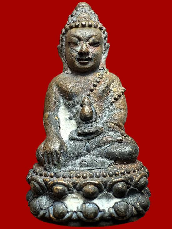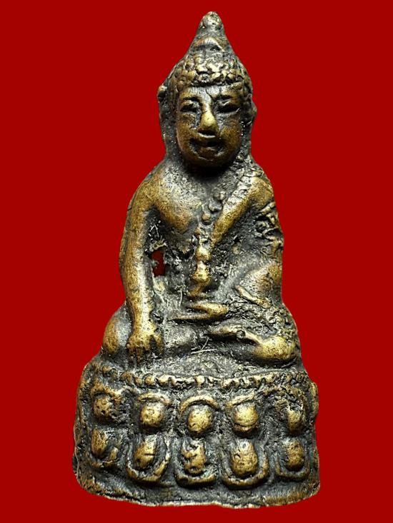 พระพุทธนิรโรคันตรายชัยวัฒน์จตุรทิศ พิมพ์หน้าใหญ่ เนื้อทองเหลือง ปี 2511 จ.พัทลุง (ตอก 3 โค้ด) พ่อท่านคล้าย พ่อท่านหมุน อ.นำ ลพ.คง ลพ.ปาน ปลุกเสก |