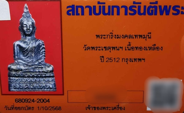 พระชัยวัฒน์ไม่ทราบที่เนื้อทองเหลืองหมายเลข 3604 |