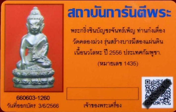 พระกริ่งพระพุทธทักษิณมิ่งมงคล เนื้อเงิน ปี 11 มาพร้อมบัตรรับรอง |