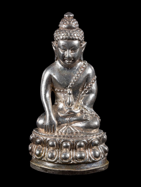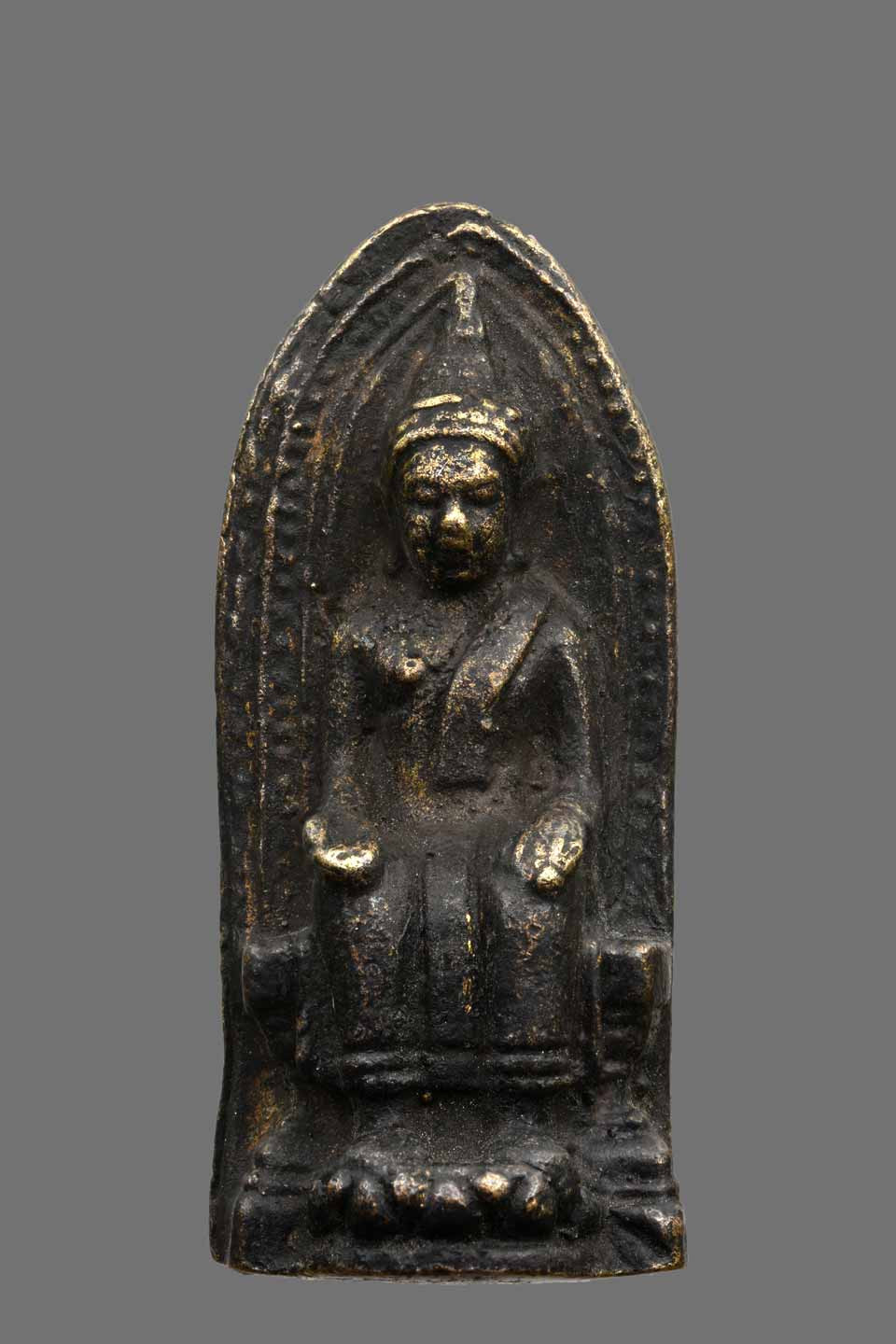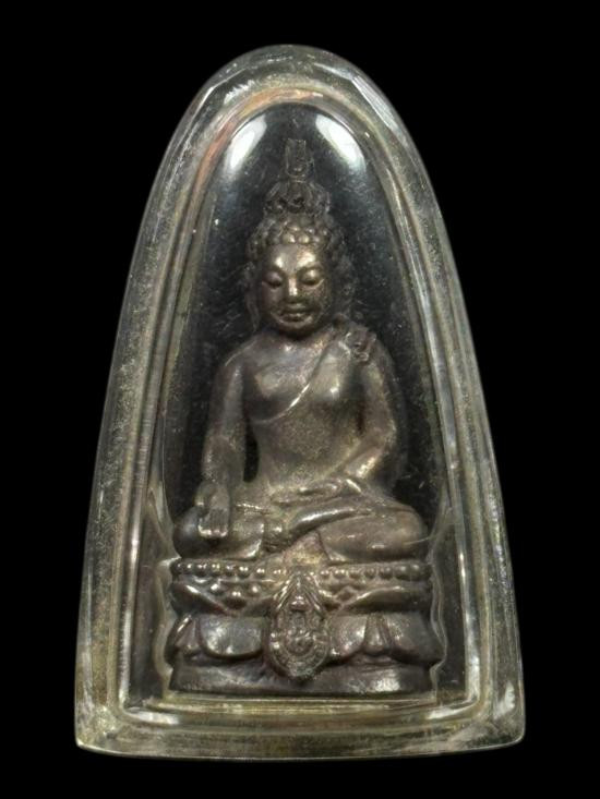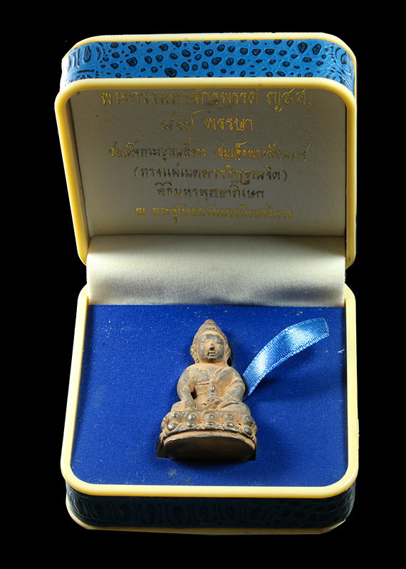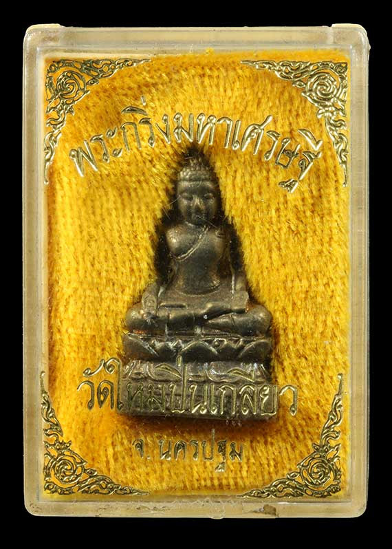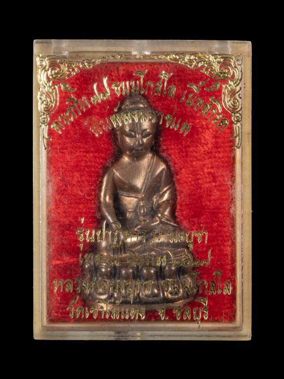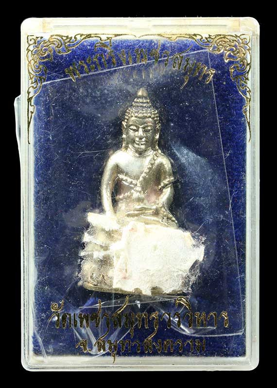 พระชัยวัฒน์รุ่นแรก วัดเศวตฉัตร 2509 เนื้อนวะโลหะ ผิวกลับดำ สวยเดิม คราบเบ้าตามซอก มีกล่องเดิม |