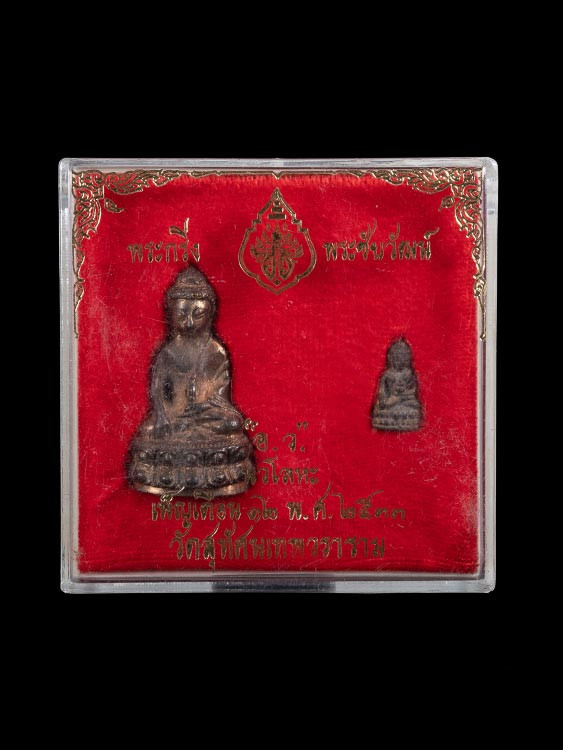 พระชัยวัฒน์ วัดบางขุนพรหม ปี 2531 เนื้อนวโลหะ หายาก สร้างน้อย |