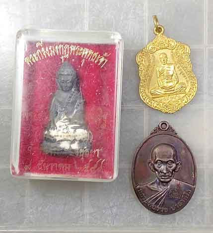 พระกริ่งมงกุฎพระพุทธเจ้า + เหรียญ ปี53 + ปี 60 หลวงพ่อรวย วัดตะโก อยุธยา |