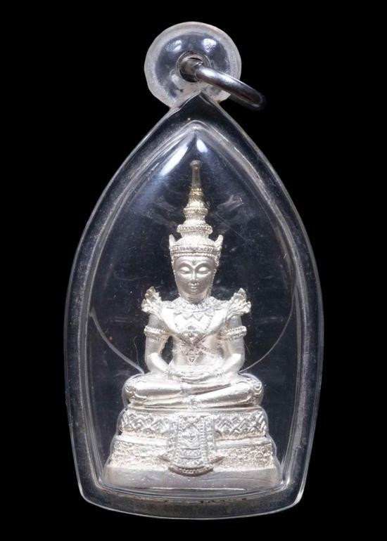 พระแก้วมรกต กรมสรรพสามิต ปี 2539 เนื้อเงิน 99.9% ชุบทองสามกษัตริย์ หมายเลข 55471 พร้อมกล่องเดิมๆสวยแชมป์ครับ |